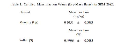 表 1 中提供了汞和硫的認(rèn)證值,以基于干質(zhì)量的質(zhì)量分?jǐn)?shù) [1] 表示。NIST 認(rèn)證值是 NIST 對其準(zhǔn)確性有最高置信度的值所有已知或可疑的偏差來源都已被調(diào)查或考慮 [2]。認(rèn)證值是對真實值的當(dāng)前最佳估計。