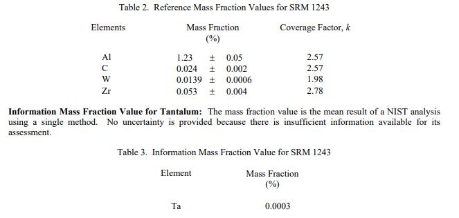 表 1 中報(bào)告了 SRM 1243 的 14 種成分的認(rèn)證值,作為收到時(shí)的質(zhì)量分?jǐn)?shù)值 [1]。 NIST 認(rèn)證值是 NIST 對(duì)其準(zhǔn)確性具有最高置信度的值,因?yàn)樗幸阎蚩梢傻钠顏碓炊家驯徽{(diào)查或考慮在內(nèi) [2]。價(jià)值分配分析由 NIST 和合作實(shí)驗(yàn)室進(jìn)行。