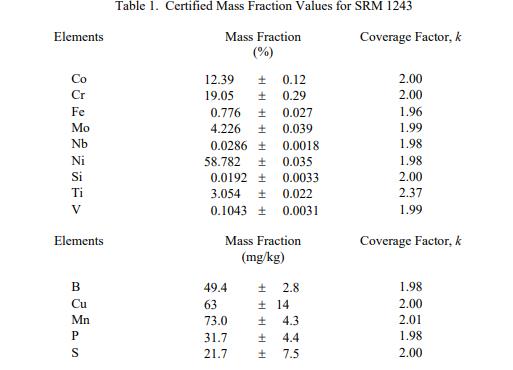 NIST SRM 1243 Ni-Cr-Co合金UNS N07001(標(biāo)準(zhǔn)品)的認(rèn)證在規(guī)定的測(cè)量不確定度內(nèi)無(wú)限期有效,前提是按照本證書中給出的說明處理和存儲(chǔ) SRM(參見“使用說明”)。因此,不需要定期重新校準(zhǔn)或重新認(rèn)證此 SRM。如果 SRM 損壞、污染或以其他方式修改,則認(rèn)證無(wú)效。